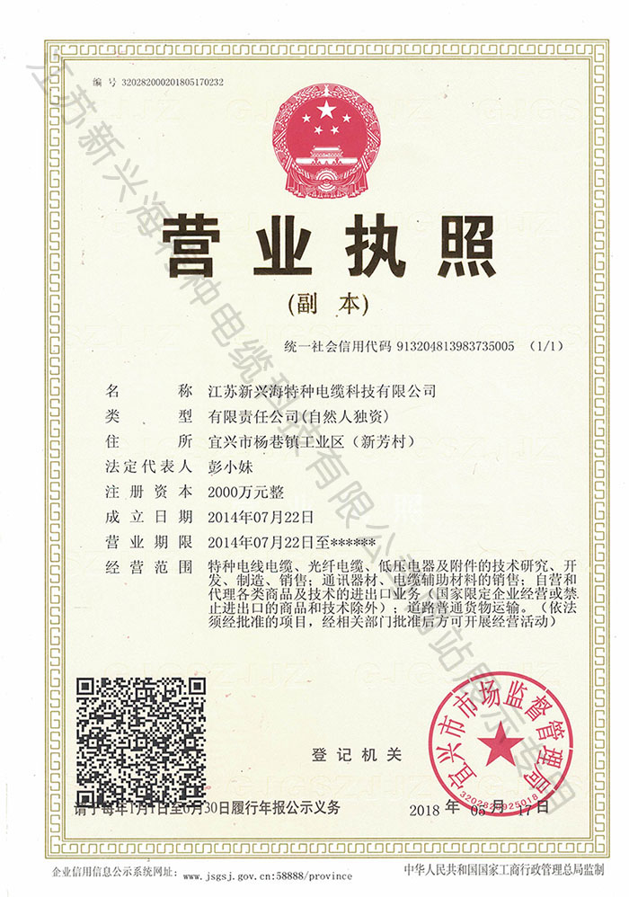 江蘇新興海特種電纜科技有限公司